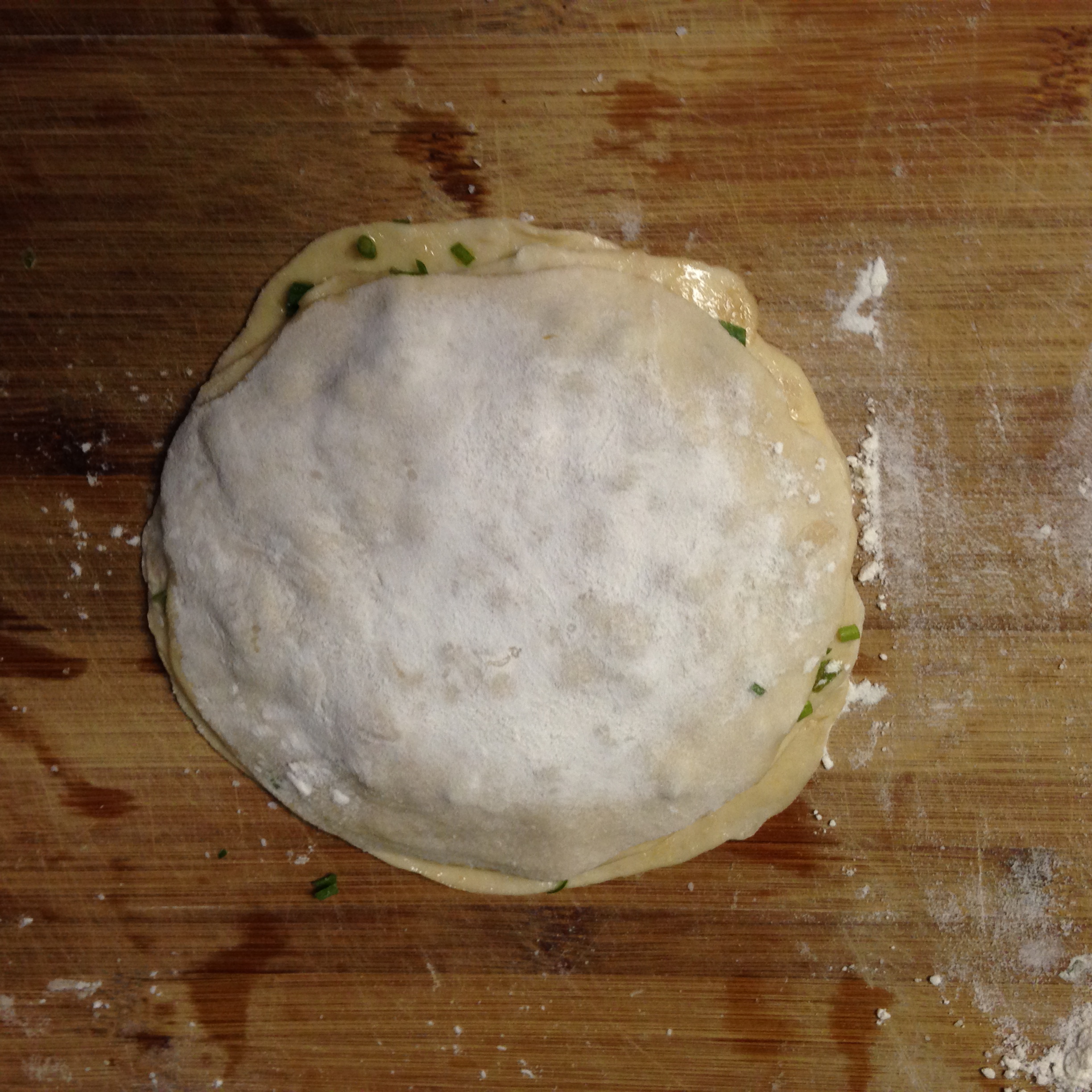 Scallion Crisp, Shrimp with corn and peas