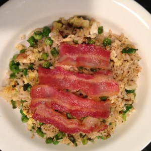 Stir-Fried Rice with Bacon, Egg and Pea