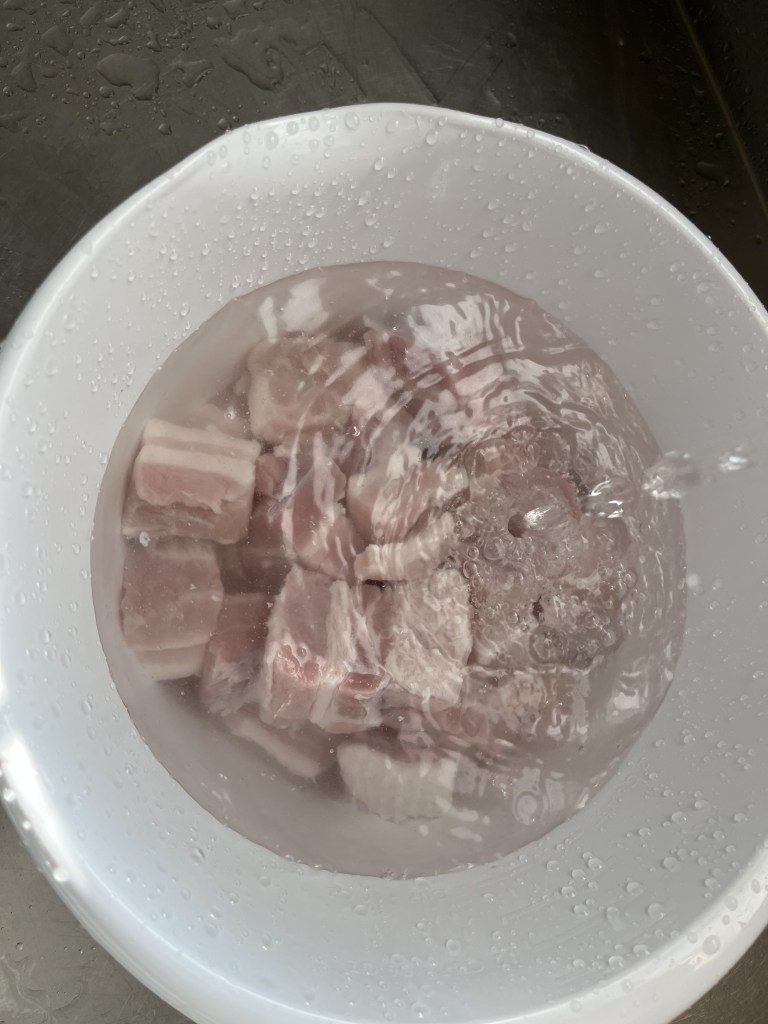 - Cut the meat about 1 inch square, wash them in the water well and drain them.